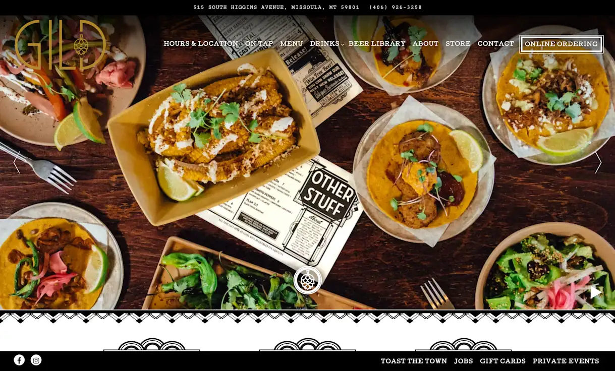 Established in Missoula, Montana, Gild Brewing is a destination for those who value community, quality and knowing where their food and drink come from. Their website showcases a plethora of events such as live music and community pint nights. Illustrated borders add to the website’s unique character while a sticky “Store” button pushes guests to easily purchase merch and more when viewing on a mobile device.
