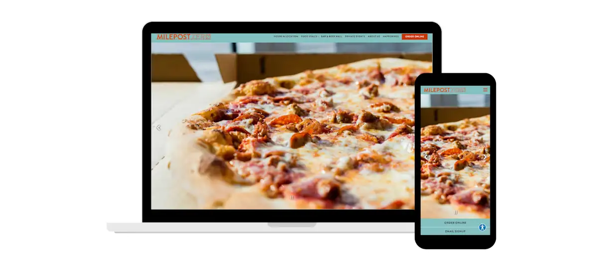 In Fall 2021, Milepost Zero opened in Denver’s Ballpark neighborhood. The seven food stalls each have their own page on the website with three sections: About Us, Hours and Menu. The homepage includes an Instagram embed, which brings their social media channel directly onto their website and creates more cohesive branding.
