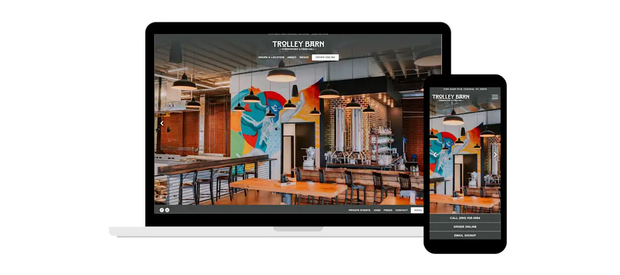 Trolley Barn Fermentory and Food Hall is a concept from Charlotte-based brewery Legion Brewing. It opened in Summer 2021 and houses a brewery, taproom and three food stalls. The website has an industrial feel — modeled after the space — with a grayscale tone. In the footer, there’s an email signup button for online visitors to opt into receiving updates.