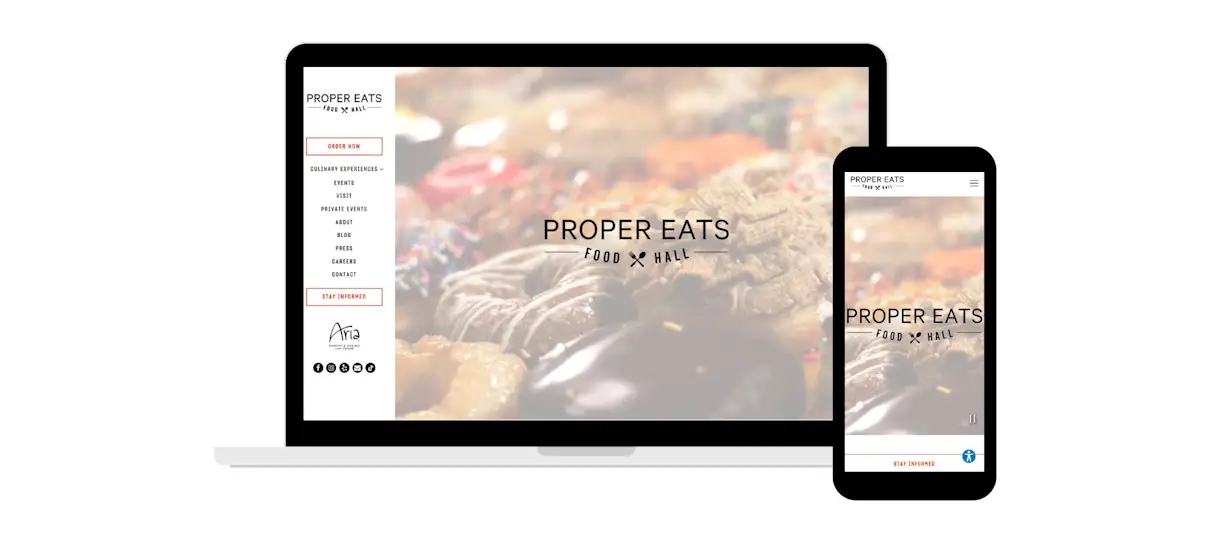 Starting right on the website homepage, Proper Eats Food Hall creates a dynamic experience with an embedded video featuring beautiful shots of the space, behind-the-scenes cooking, and food plating. At the bottom of the page, the Instagram integration is being utilized to bring the food hall’s fantastic food photography front and center.