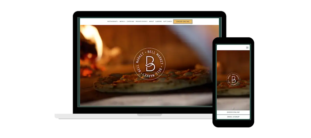 The video hero on their homepage gives online visitors a sense of what visiting in person is like with a walkthrough of the space and up-close shots of both the food and vendors. Bell Market is also making use of BentoBox’s event management software to support their private events offerings.