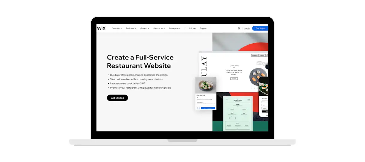 Wix boasts a notable share of the website builder market, featuring a drag-and-drop setup similar to Squarespace. While not a restaurant-only website builder, Wix’s restaurant options include 60+ pre-designed templates, commission-free online ordering, reservations, menu management, secure payments for ticketed events, and social media integrations. However, Wix lacks some important features that restaurants need like local listing management and fast, full setup by the Wix team.