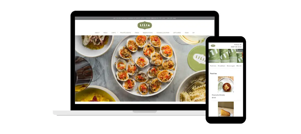 In a rehabbed Williamsburg auto-body garage, Lilia serves handcrafted pasta and classic Italian cocktails. Considered one of Brooklyn's best restaurants, Lilia creates the same best-in-class experience online for website visitors. With olive green and slate tones, its website creates a relaxed and calming vibe, while, its easy-to-navigate header guides users to critical information. Additionally, its website drives significant revenue with direct online ordering and digital gift cards.