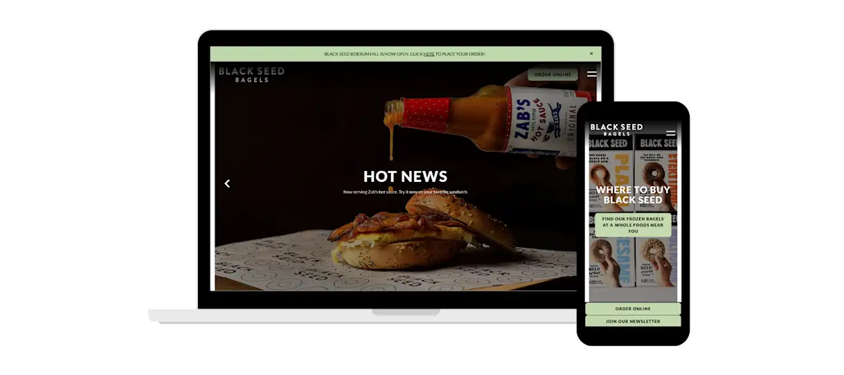 Led by James Beard-nominated Executive Chef and Head Baker Dianna Daoheung, Black Seed Bagels is an artisan bagel shop taking NYC by storm. The bold photography and block coloring on its website help it stand out as a modern-day New York bagel shop. With nine locations (two more coming in late 2022) and frozen bagels for purchase at Whole Foods, its website also details the many places visitors can find its delicious bagels. It also uses a carousel banner to keep its increasing followers up-to-date on new locations, menu items and partnerships.