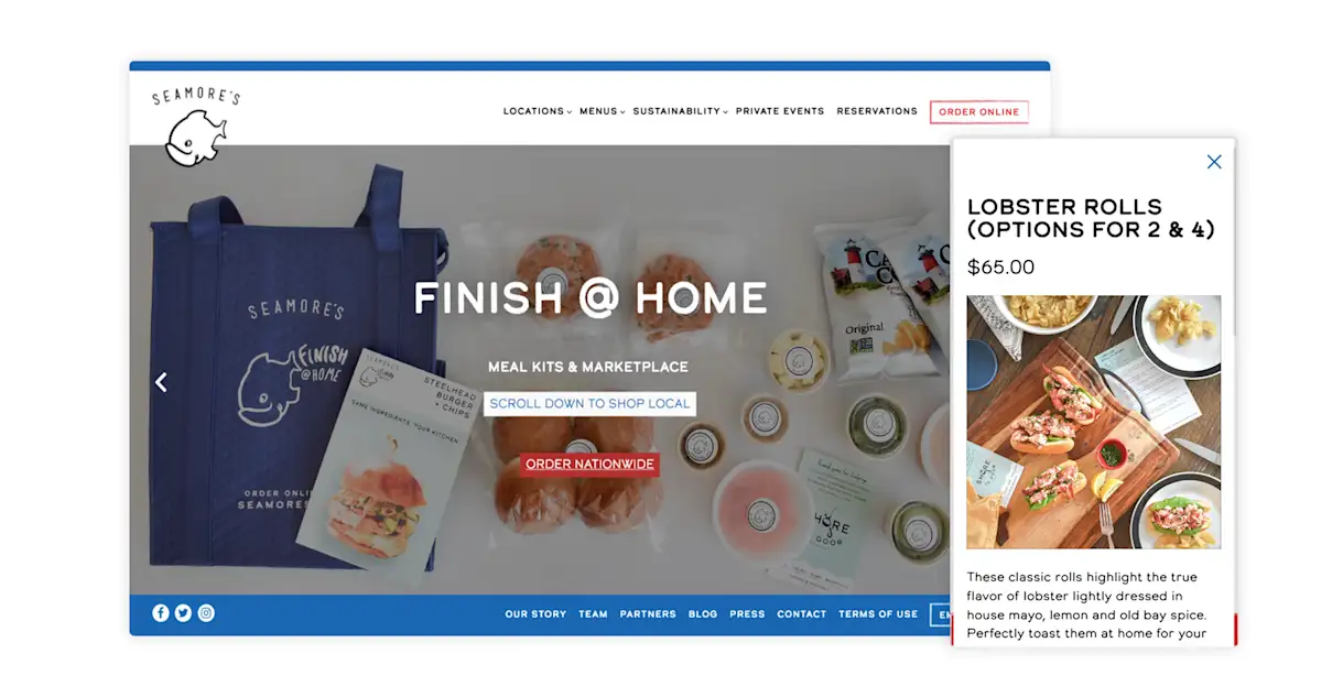 Using BentoBox’s catering store, Seamore’s sells their “Finish @ Home” meal kits such as “Lobster Rolls (Options for 2 & 4)