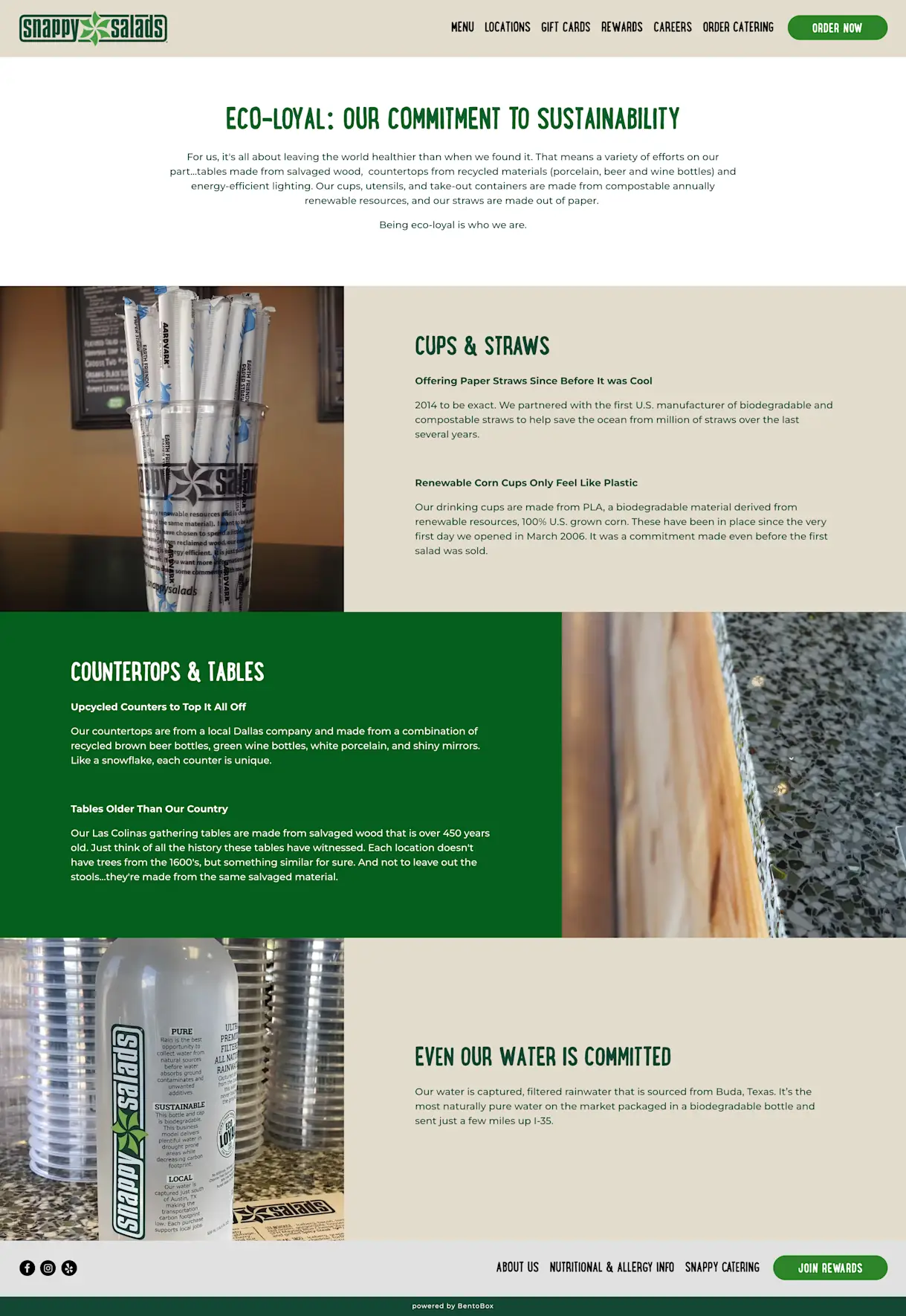 Read on to see how real restaurants are featuring sustainability on their website following the four guidelines above.