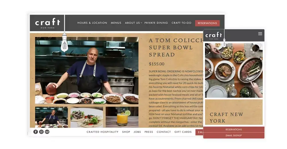 If your restaurant’s brand is closely associated with a person — typically a chef or owner — you can use that person as a framing device for your Super Bowl promotion. Executive Chef Tom Colicchio is the owner of New York City’s Craft, which the restaurant showcased by framing its Super Bowl package as, “A Tom Colicchio Super Bowl Spread.”