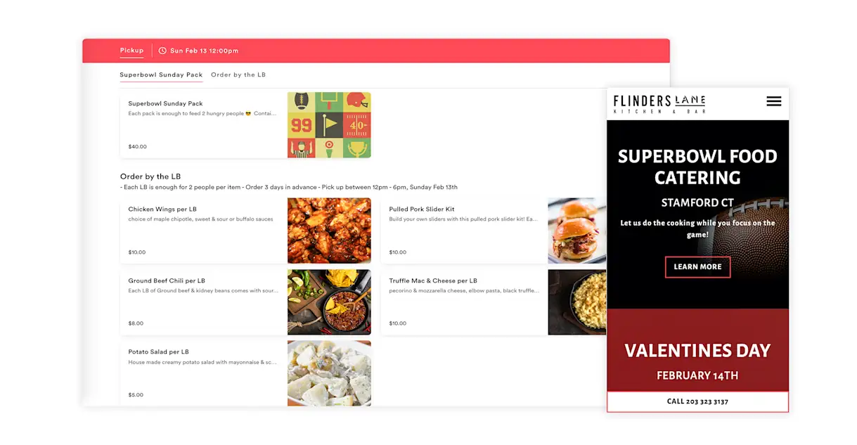 The reasonably priced and adequately portioned menu items make it easy for guests to customize their ideal game day spread. The best part? After licensing Pre-Order & Catering, Flinders Lane needed fewer than 10 days to launch its Super Bowl promotion — and it did all the setup itself.