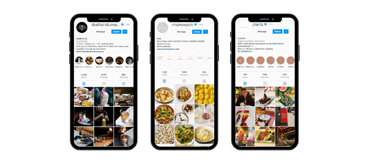 All of these ingredients make it not only possible but likely for restaurants to amass an audience on Instagram, provided they follow best practices. It’s not uncommon for restaurants to gain thousands of followers on the platform— check out Death & Co, Misi, and PLANTA, which all have more than 100,000 Instagram followers.