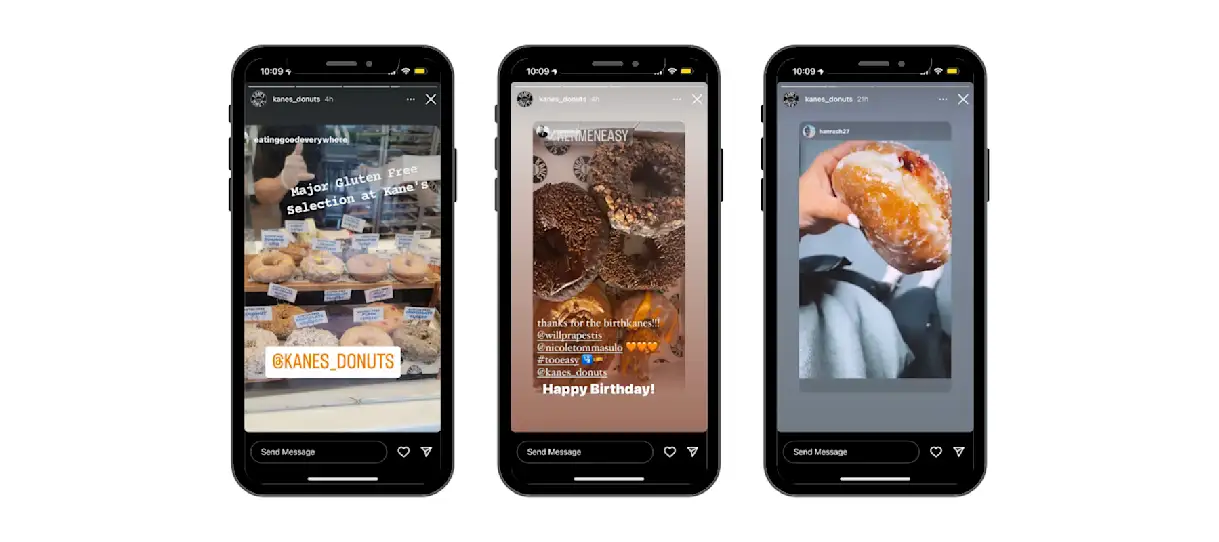 Constantly sharing user-generated content ensures the restaurant’s Stories stays fresh on a user’s timeline and encourages followers to post (and tag the restaurant) the next time they visit in hopes of getting shared themselves. Resharing images and videos takes seconds and ensures a steady stream of content.