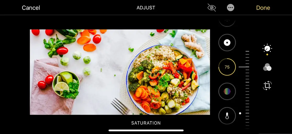 Pro Tip: When getting started, it’s best to focus on finding one or two adjustments to help create a more branded approach to the restaurant’s food photography. Multiple different filters or modifications to the photo can make it seem overwhelming, inauthentic or unappealing. Apple has outlined more ways to apply filters, angle adjustments and more.