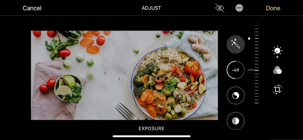 Exposure, which adds a layer of darkness or lightness to the photo.