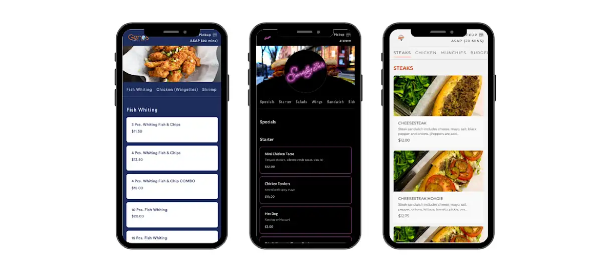 How It Works: With Design & Customization, restaurants can add custom fonts, colors and header layouts to their online ordering page. BentoBox designers work with restaurants to customize these designs, just like they do with the rest of the restaurant's website. In the examples above, Geno's Fish & Chips (left) and Someday Bar (middle) make great use of colors and headers to bring their brands through, while Weeyums Philly Style (right) shows how custom fonts can make an online ordering page far more ownable.