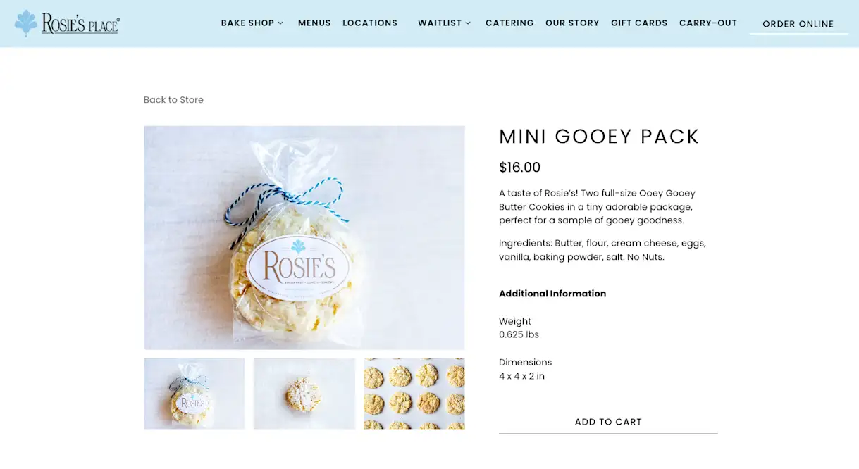 At Rosie’s, a bakery with three locations north of Indianapolis, the word “gooey” means something special: a state of cookie, perhaps, but also a state of mind. “Get your ooey gooey fix!” is their homepage’s welcoming line, and with this adorable sampler pack, now anyone anywhere can.