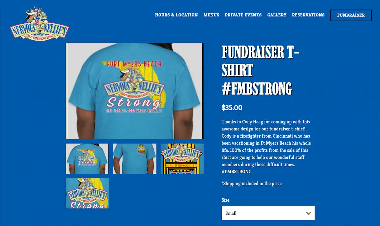 Fundraiser t-shirts and hats are a big theme in holiday restaurant merch, and in 2022, Nervous Nellie’s moved more than any other restaurant. Proceeds from the shirt go to the restaurant’s staff — an excellent idea we discussed in our article 11 Restaurant Employee Appreciation Ideas.