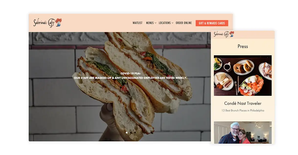 Though its original location in the Italian Market closed during the pandemic, Sabrina's Cafe's brand and business remains strong. It still has beloved locations near the Art Museum and University City, along with a pair in New Jersey and a fifth soon to come on South Street. Its website reflects its image as one of Philly's quintessential brunch spots, including soft, welcoming colors and a press section that presents its local accolades.