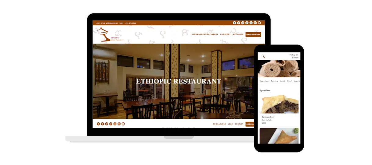 Ethiopic is an authentic Ethiopian restaurant that honors ancient Ethiopian Ge'ez language and culture in a cozy and relaxed atmosphere. Its website captures the essence of its interior with earth tones, Ge'ez script and vegetable illustrations. Its user-friendly navigation and simple, informative content make it easy for visitors to learn more about the restaurant’s menu and diner experience. Additionally, its website generates thousands of dollars per month with direct online ordering.