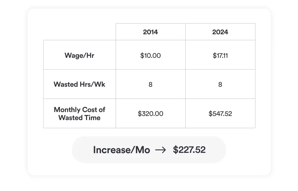 Due to a nearly three-quarters increase in the cost of labor, the cost of inefficiently taking orders over the phone is now $550 per employee per month, which is over $225 per month more than it cost a decade ago.