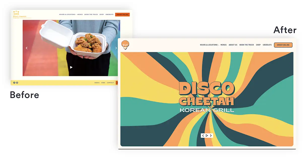 Disco Cheetah already had an optimized website, but its 2021 design refresh was too good to ignore. The first thing guests see when they land on the homepage is the groovy spiral design, which mirrors the food truck’s iconic exterior and reinforces the brand’s style. In addition to viewing menus and placing online orders, guests can use the website to submit private event inquiries to book the truck for catering or purchase digital gift cards for friends.