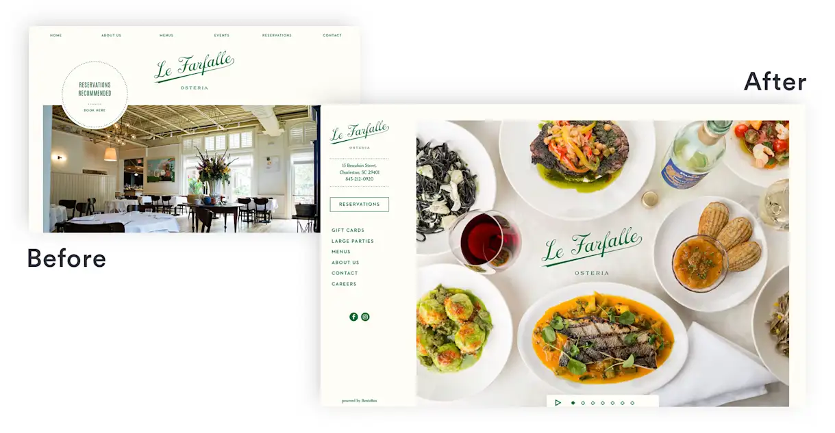 A sample of last year’s most impressive restaurant website launches — before and after BentoBox.