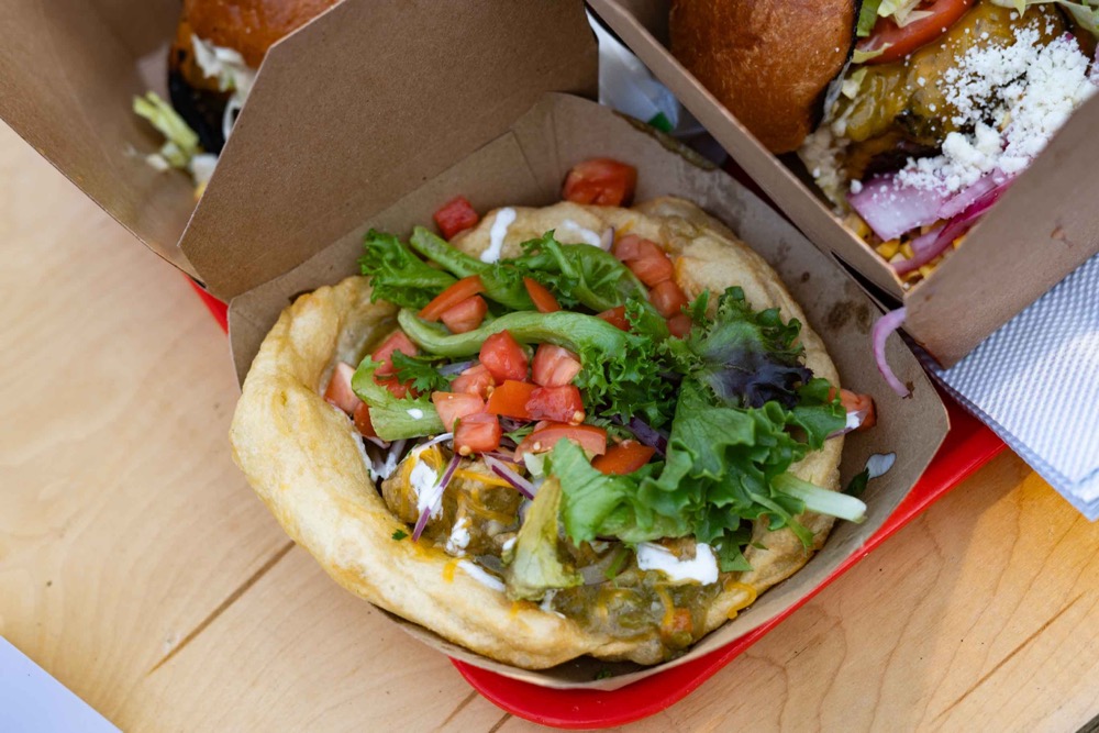 At the event, Adams was on hand to prepare fry bread: a controversial dish that, to many Navajo, evokes a painful history of displacement at the hands of the US government. “In the early 1860s, we were forced to walk to New Mexico, after which the military engaged in a deliberate campaign of destroying our food systems,” Adams explained. “During that journey, the government gave us commodities: flour, salt, lard, sugar. From that, we created this dish.”