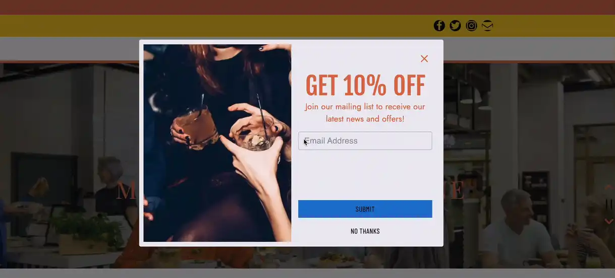 Many restaurants miss the opportunity to capture site visitors’ contact information at the top of the funnel and incentivize them to return. Through diner sign up overlays, you can now collect diner information through popup templates that focus on first-time offers for new diners and more. Additionally, you can send incentive emails after diners sign up to drive orders and promote re-engagement.