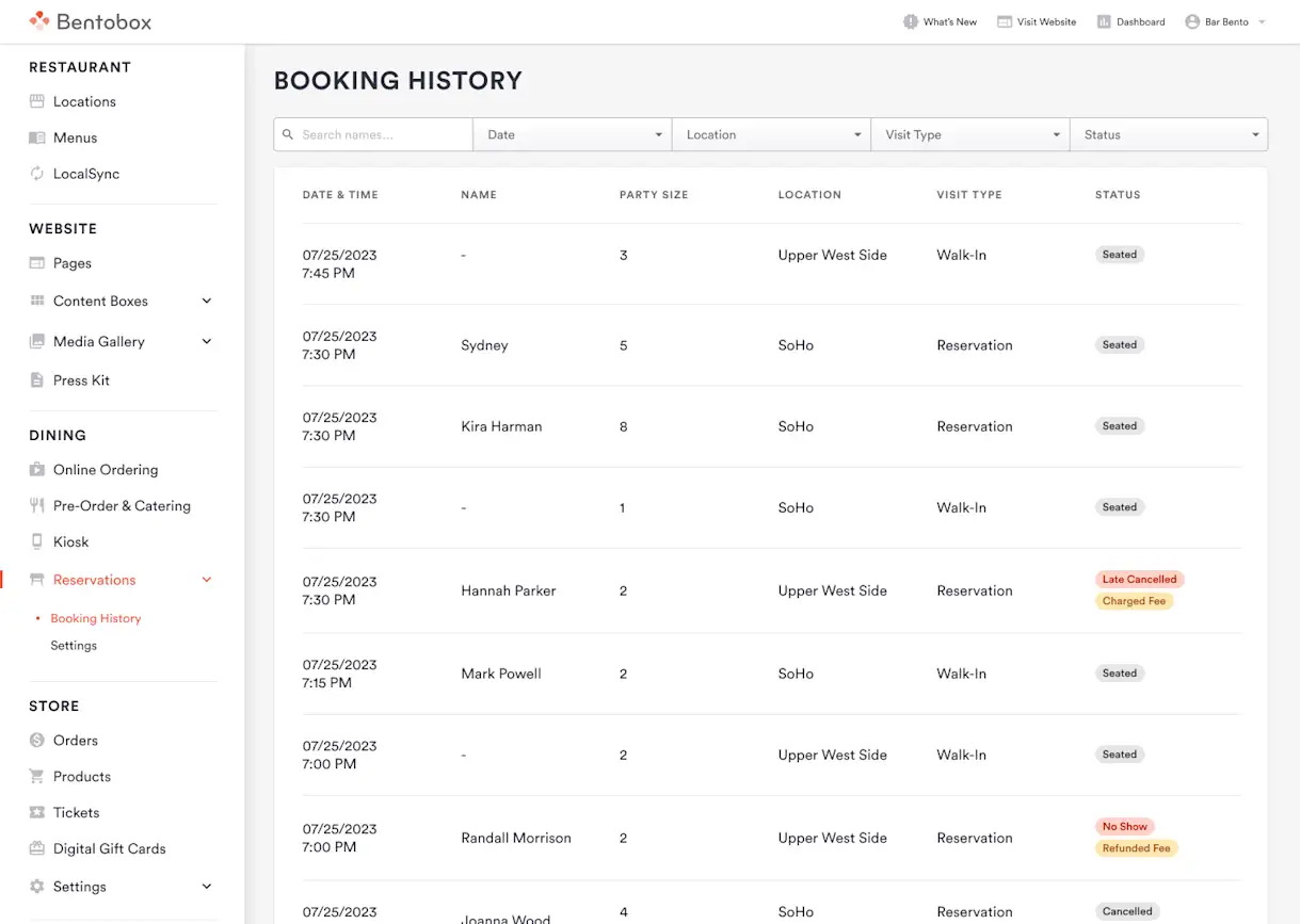 Reservations and Digital Waitlist customers using Bento Book can now see a more detailed view of dining activity, including on-premise dining activity and diner details, all in one place. This improves the accessibility of information and creates a central source of truth.