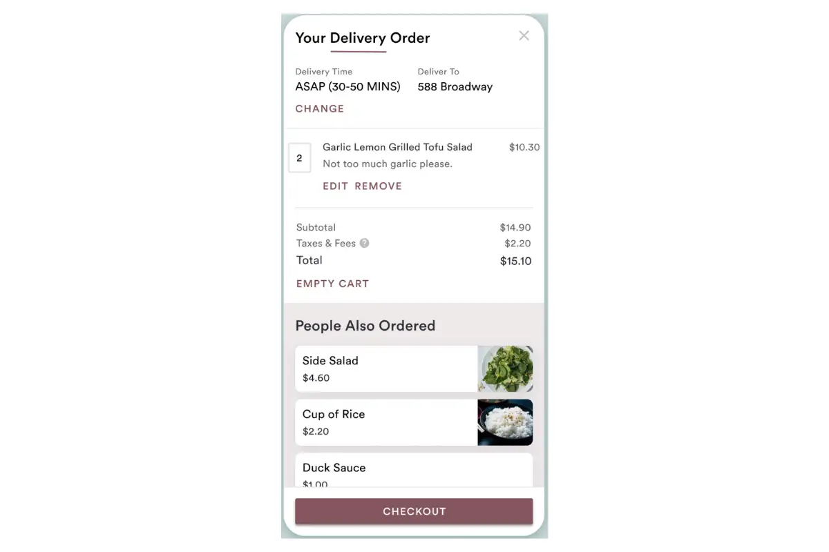 Restaurants using Pre-Order & Catering can now include item upsells on orders. (This was previously only available for Online Ordering).